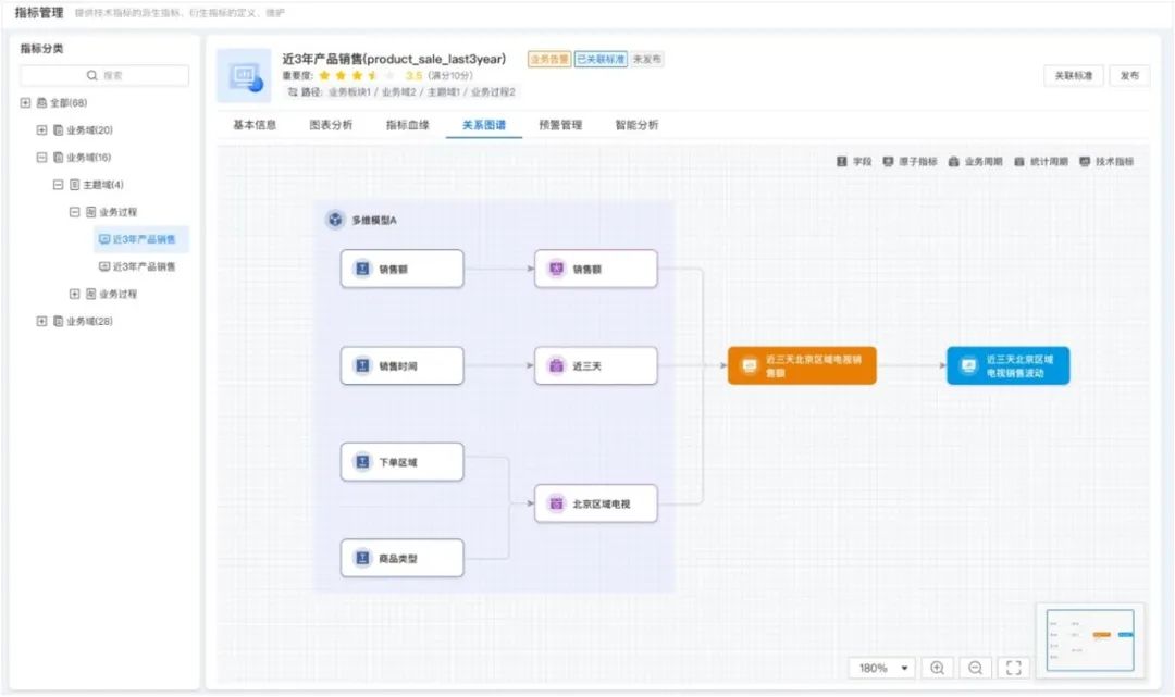 平臺將指標(biāo)拆分成更細(xì)粒度的原子指標(biāo)、統(tǒng)計(jì)周期、業(yè)務(wù)限定去管理,提高指標(biāo)的開發(fā)速度,提升指標(biāo)的復(fù)用性、統(tǒng)一指標(biāo)的業(yè)務(wù)和技術(shù)口徑。如果指標(biāo)異常,還能實(shí)現(xiàn)指標(biāo)溯源,同時(shí)提供了從指標(biāo)標(biāo)準(zhǔn)到定義到管理的完整能力。