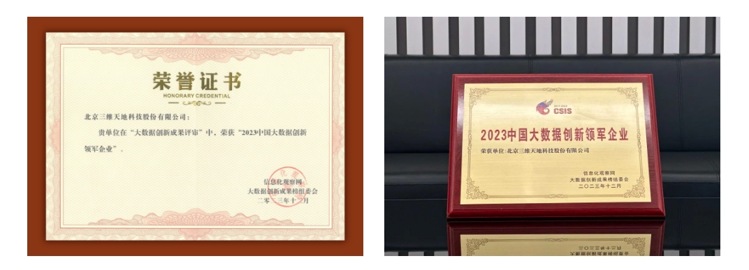 點(diǎn)亮數(shù)據(jù)新價(jià)值|三維天地榮獲2023中國大數(shù)據(jù)創(chuàng)新領(lǐng)軍企業(yè)