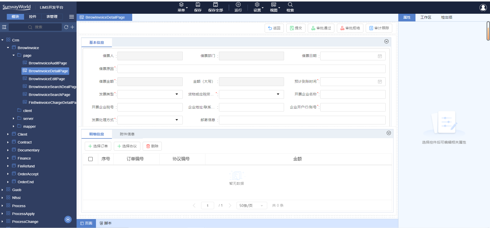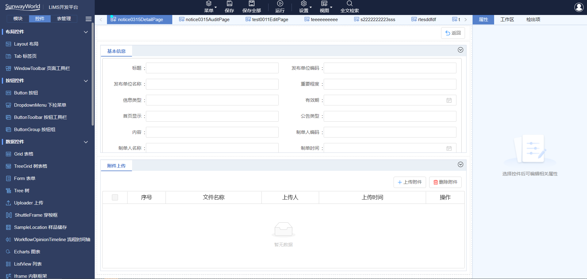 平臺內置LIMS產(chǎn)品的所有界面控件,分為布局控件、按鈕控件、數(shù)據(jù)控件、輸入控件、導航控件等,通過拖拽方式即可繪制出界面,方便項目實施,客戶后續(xù)可自行維護,方便快捷。
