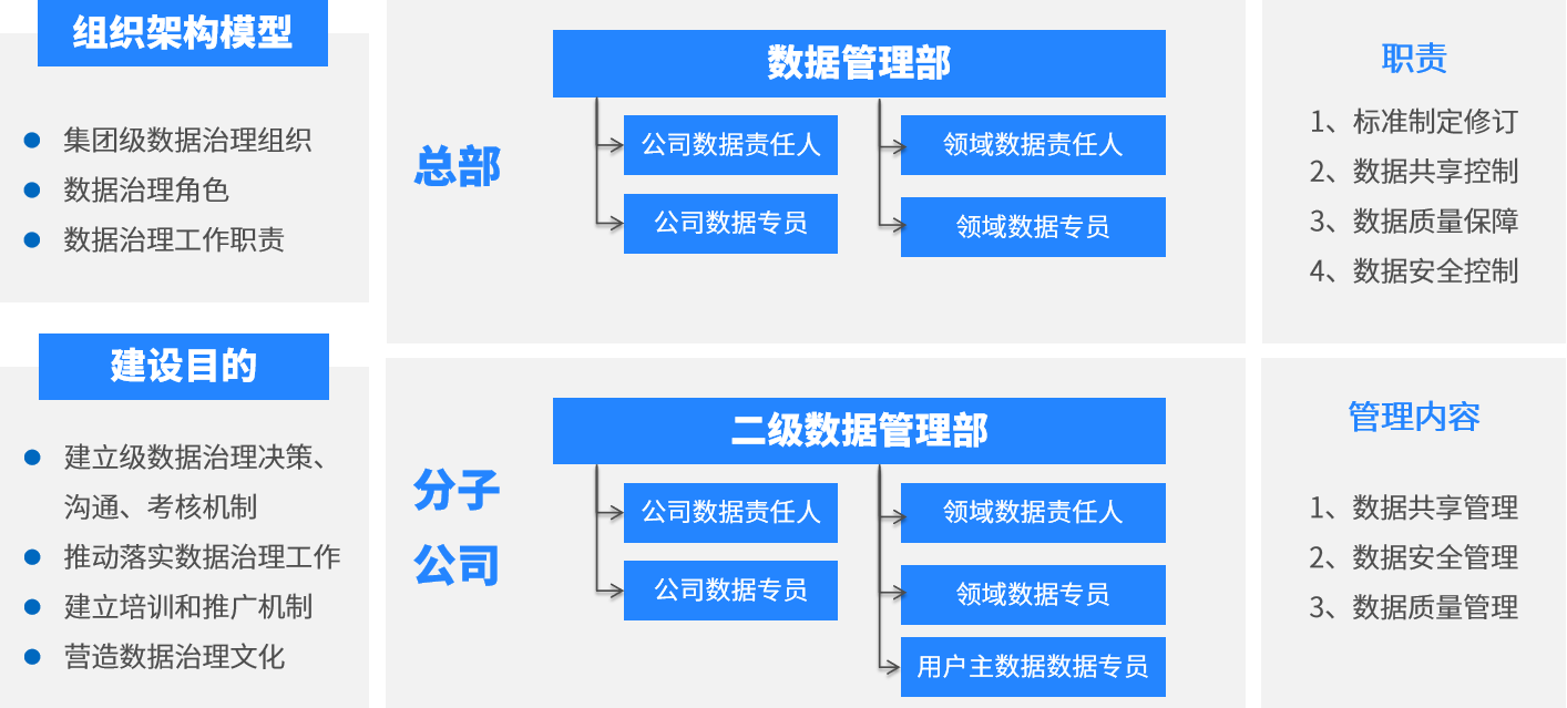 企業(yè)數(shù)據(jù)資產(chǎn)的常態(tài)良性運(yùn)營,是“管理”+“技術(shù)”不斷迭代結(jié)合的結(jié)果,健全的數(shù)據(jù)管理組織體系及配套的管理制度是企業(yè)數(shù)據(jù)受控和順暢協(xié)同運(yùn)營的保障。