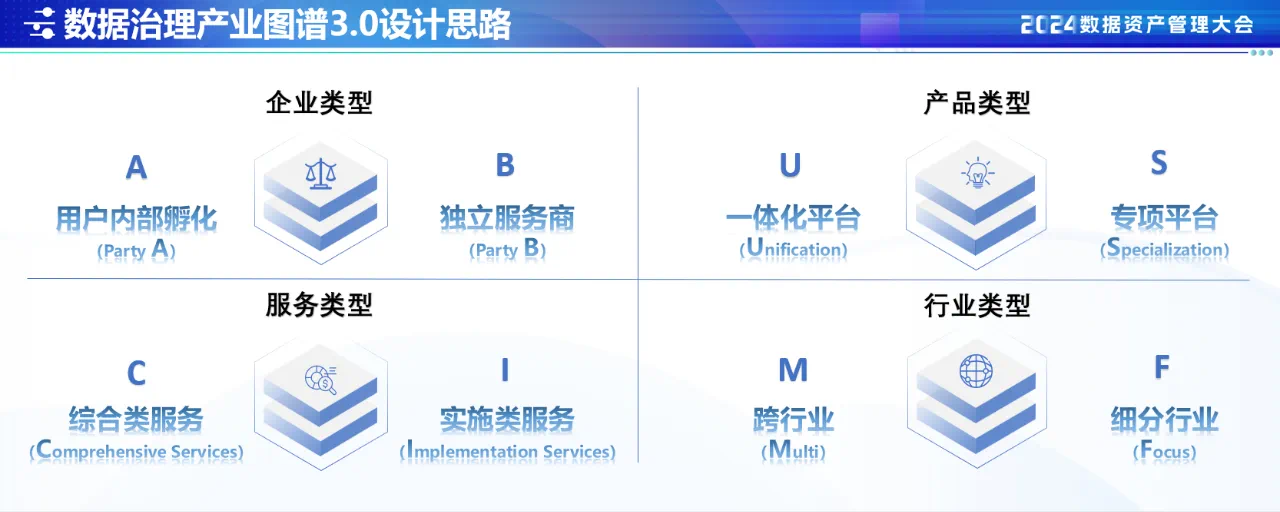 近日,中國通信標準化協(xié)會大數(shù)據(jù)技術標準推進委員會在北京成功舉辦了以“數(shù)據(jù)重塑價值 智能鏈接未來”為主題的“2024數(shù)據(jù)資產(chǎn)管理大會”。主論壇期間正式發(fā)布了《數(shù)據(jù)治理產(chǎn)業(yè)圖譜3.0》,三維天地入選該系列圖譜,與阿里云、騰訊科技、華為云等數(shù)商共同被認定為BUCM型企業(yè)(即獨立服務商、一體化平臺、綜合類服務商、跨行業(yè)領域服務提供商)。 中國信息通信研究院云計算與大數(shù)據(jù)研究所大數(shù)據(jù)與智能化部 業(yè)務主管劉思達對圖譜征集情況進行了解讀 數(shù)據(jù)治理產(chǎn)業(yè)核心圍繞數(shù)據(jù)資產(chǎn)的管理、規(guī)劃、組織、應用、防護等,通用數(shù)據(jù)治理的人員、流程與制度管理和技術工具,提供全生命周期的管控,從數(shù)據(jù)的采集、存儲、分析、流通、應用等各環(huán)節(jié),提升數(shù)據(jù)的質(zhì)量管控、標準落標、模型構建、脫敏加密、共享與應用等,從數(shù)據(jù)角度切入,為企業(yè)和組織創(chuàng)造價值。