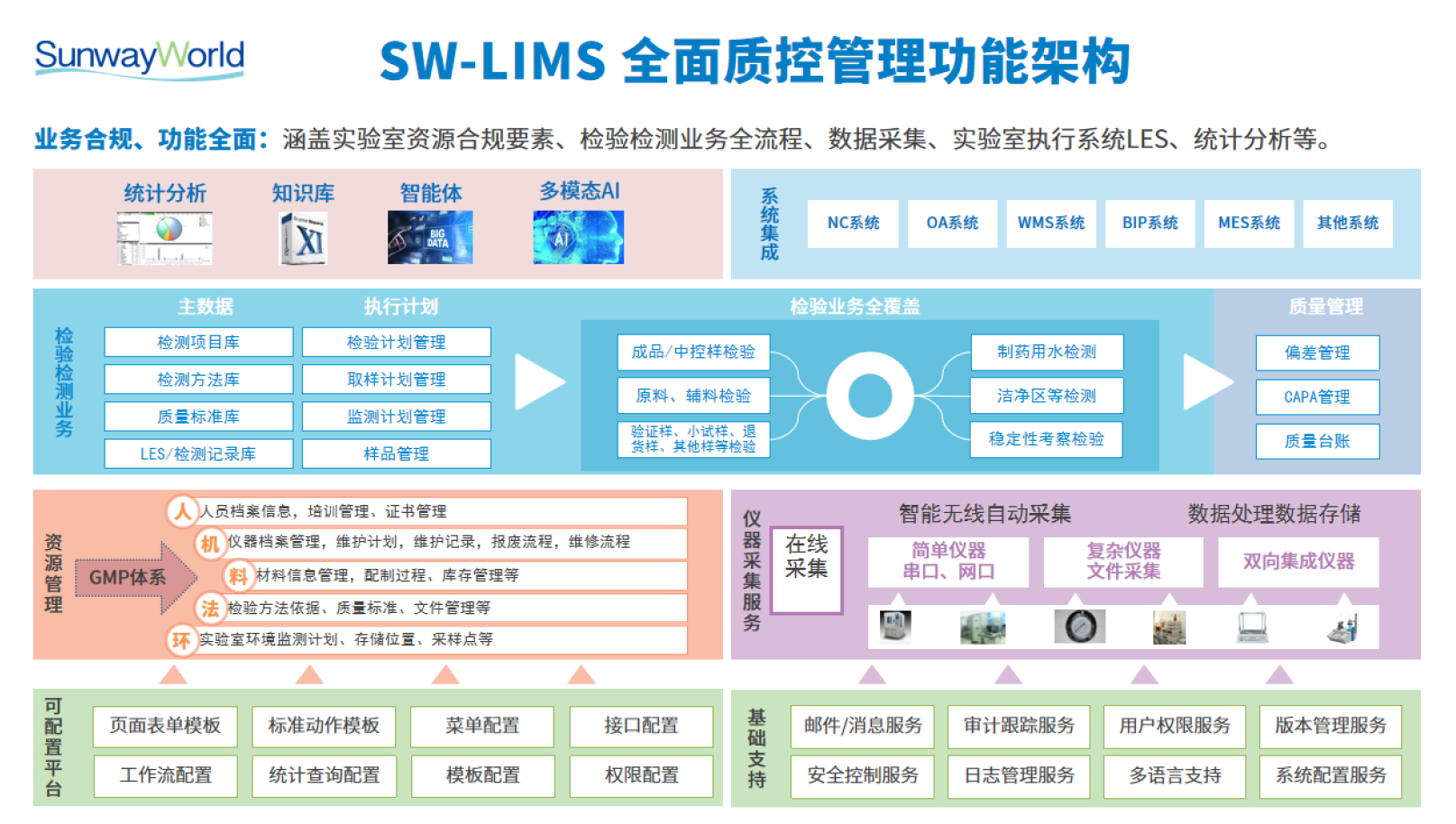 研發(fā)一體化平臺(tái)包含了:研發(fā)產(chǎn)品生命周期管理系統(tǒng)(PLM)、科研項(xiàng)目管理系統(tǒng)(RDMS)、科研過(guò)程記錄管理(ELN/LES)、臨床前研究合規(guī)系統(tǒng)(GLP)、臨床研究管理系統(tǒng)(GCP)、質(zhì)控實(shí)驗(yàn)室信息管理系統(tǒng)(LIMS)、科學(xué)數(shù)據(jù)管理系統(tǒng)(SDMS)、質(zhì)量管理系統(tǒng)、AI應(yīng)用平臺(tái)(SunwayLink)等。以下是主要軟件功能簡(jiǎn)介:
