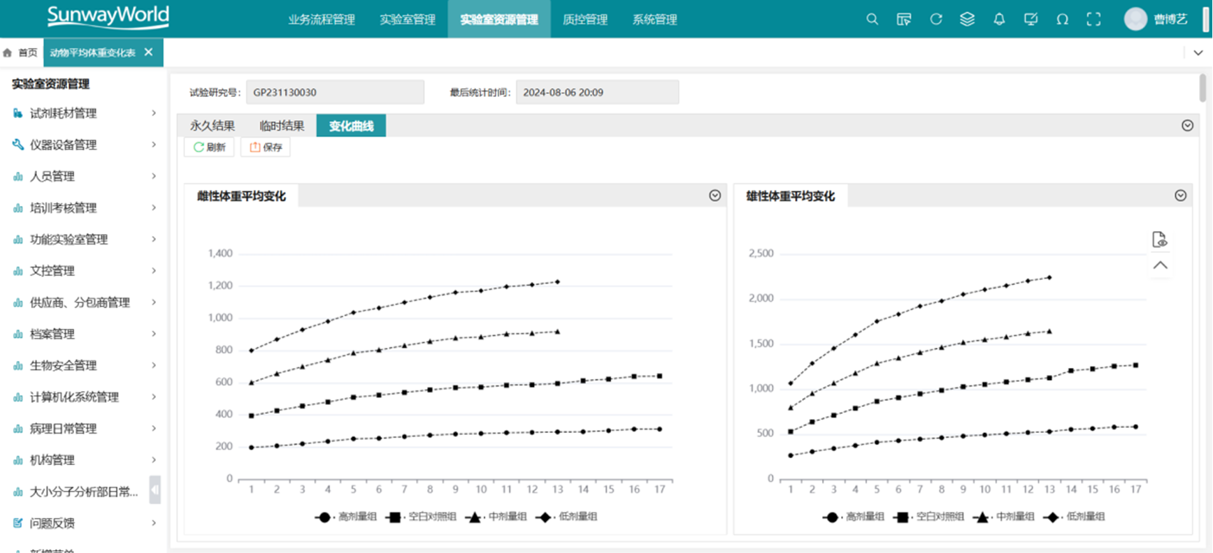 GLP系統(tǒng)聚焦毒理學(xué)、藥代動(dòng)力學(xué)、藥效學(xué)等臨床前研究流程的管理,支持試驗(yàn)設(shè)計(jì)、動(dòng)物分組、劑量設(shè)置、給藥記錄、稱重觀察等全過(guò)程數(shù)據(jù)采集。系統(tǒng)可自動(dòng)采集動(dòng)物體重、攝食、給水等信息,支持項(xiàng)目分層管理與權(quán)限控制。動(dòng)物信息、籠位記錄、用藥批次可追溯到單體,滿足GLP實(shí)驗(yàn)數(shù)據(jù)可追溯、可驗(yàn)證的核心要求。與SDMS和ELN集成后,實(shí)現(xiàn)數(shù)據(jù)的集中管理、報(bào)告生成與GLP合規(guī)審計(jì)的閉環(huán),提高藥物臨床前研究的科學(xué)性與合規(guī)能力。
