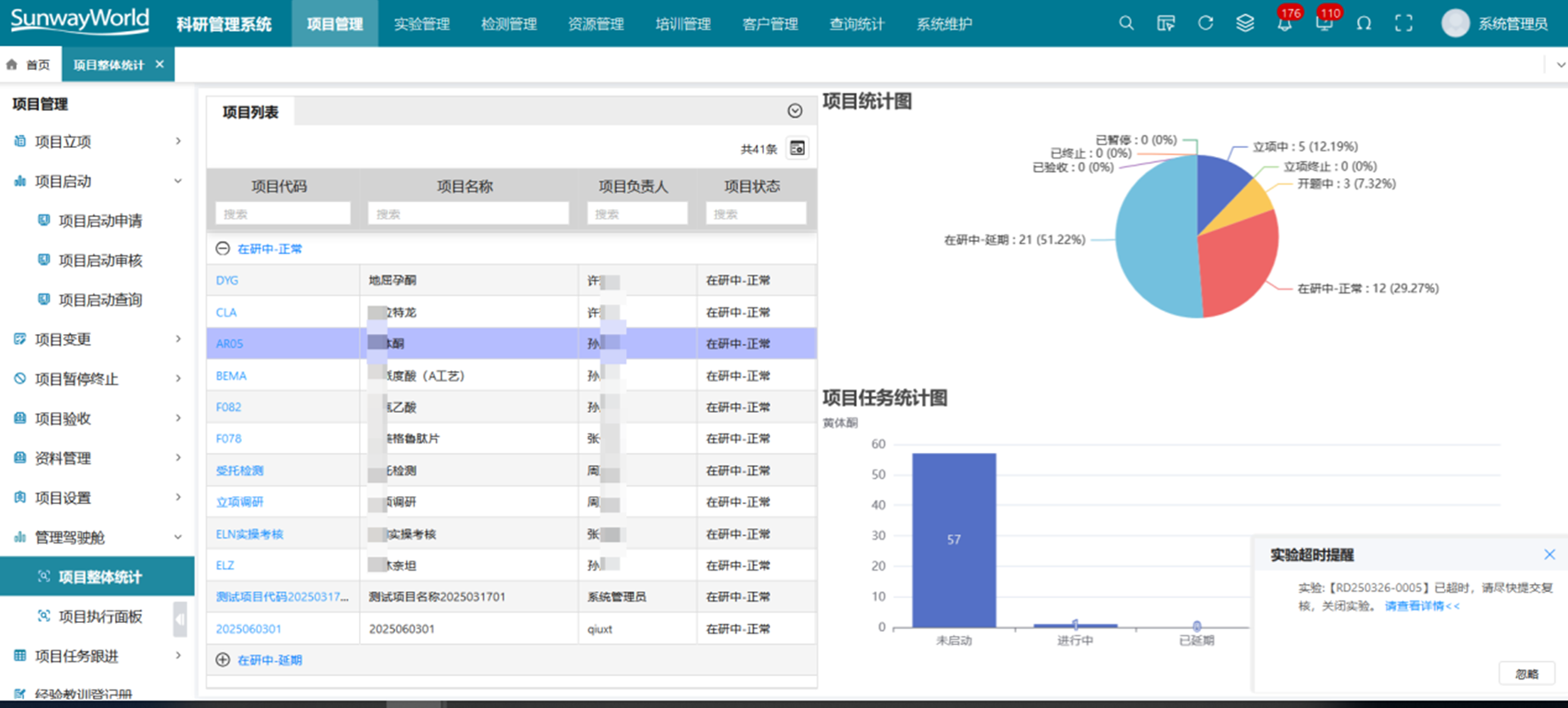 RDMS系統(tǒng)支持從項(xiàng)目立項(xiàng)、階段劃分、任務(wù)分配到資源調(diào)度與進(jìn)度追蹤的全過(guò)程管理,專為藥品研發(fā)多項(xiàng)目并行設(shè)計(jì)。系統(tǒng)內(nèi)置甘特圖、WBS結(jié)構(gòu)、關(guān)鍵路徑管理與任務(wù)依賴關(guān)系設(shè)置,自動(dòng)生成進(jìn)度報(bào)告與延期提醒。項(xiàng)目經(jīng)理可按研究階段(如靶點(diǎn)發(fā)現(xiàn)、臨床前、IND申報(bào))設(shè)定目標(biāo),分配實(shí)驗(yàn)任務(wù),追蹤各責(zé)任人的執(zhí)行情況。系統(tǒng)還能集成預(yù)算模塊,實(shí)現(xiàn)人力、設(shè)備、材料等資源調(diào)度與成本控制,提升項(xiàng)目執(zhí)行的透明度與效率。