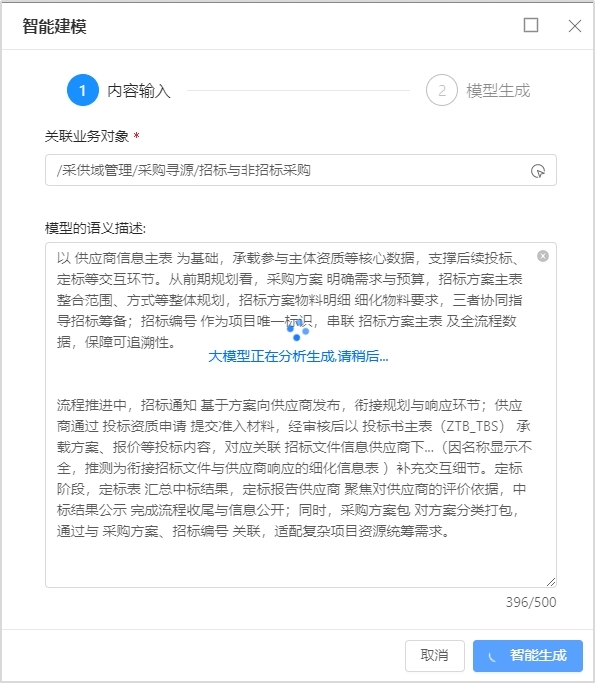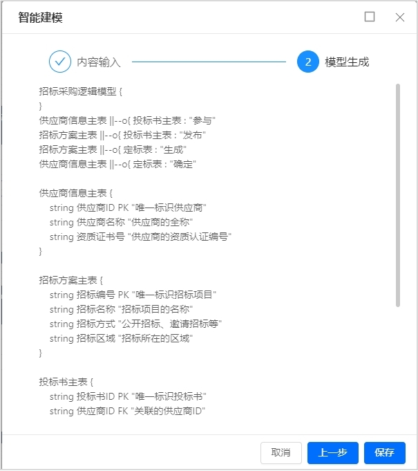 數(shù)據(jù)建模智能體核心邏輯在于“語義理解 + 自動(dòng)化生成”,NLP 技術(shù)能深度解析業(yè)務(wù)需求的自然語言描述(如 “以供應(yīng)商信息為基礎(chǔ)構(gòu)建招投標(biāo)的業(yè)務(wù)模型”),提取關(guān)鍵實(shí)體(招標(biāo)方案、項(xiàng)目方、供應(yīng)商)、屬性(投標(biāo)類型、投標(biāo)價(jià)、時(shí)間)與關(guān)系(招標(biāo)項(xiàng)目——供應(yīng)商的歸屬關(guān)系);