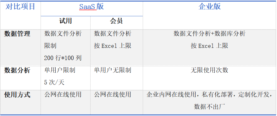 SaaS版和企業(yè)版產(chǎn)品對(duì)比如下: